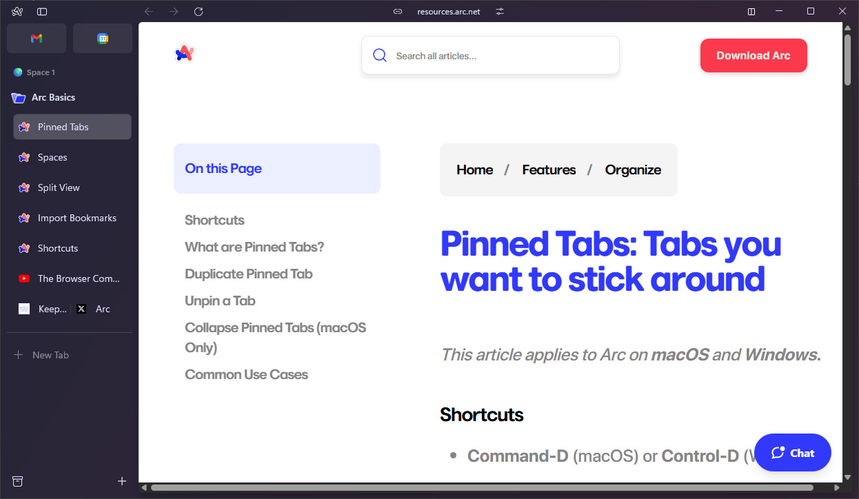 2. Rögzített fülek (Pinned Tabs) A rögzített fülek egy adott Space-hez (munkaterülethez) kapcsolódnak, és projektekhez vagy témákhoz köthetők. Például a munka Space-edben lehetnek rögzítve a projekt dokumentumaid, míg a személyes Space-edben a hobbi oldalaid.