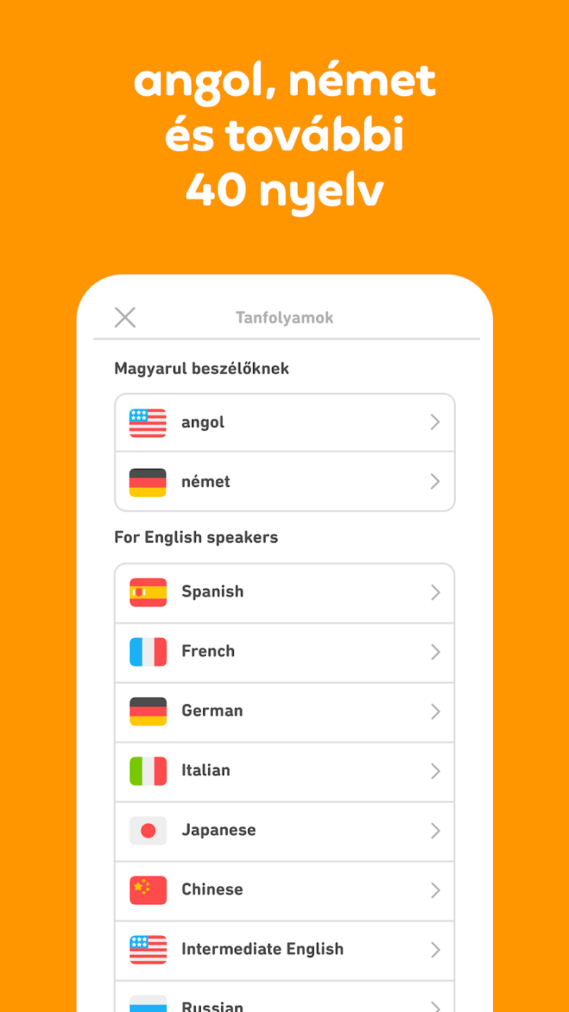 A Duolingo a világ vezető ingyenes nyelvtanuló platformja, amelyet több mint 500 millió felhasználó töltött le világszerte. Az alkalmazás játékos, interaktív módszerekkel tanít több mint 40 nyelvet, köztük angolt, németet, spanyolt, franciát, olaszt, japánt és sok mást. A Duolingo magyar felhasználók számára is ideális választás: a magyar nyelvű felületről angolt, németet és más nyelveket tanulhatunk, miközben a rendszer folyamatosan alkalmazkodik a tudásszintünkhöz és haladási tempónkhoz.