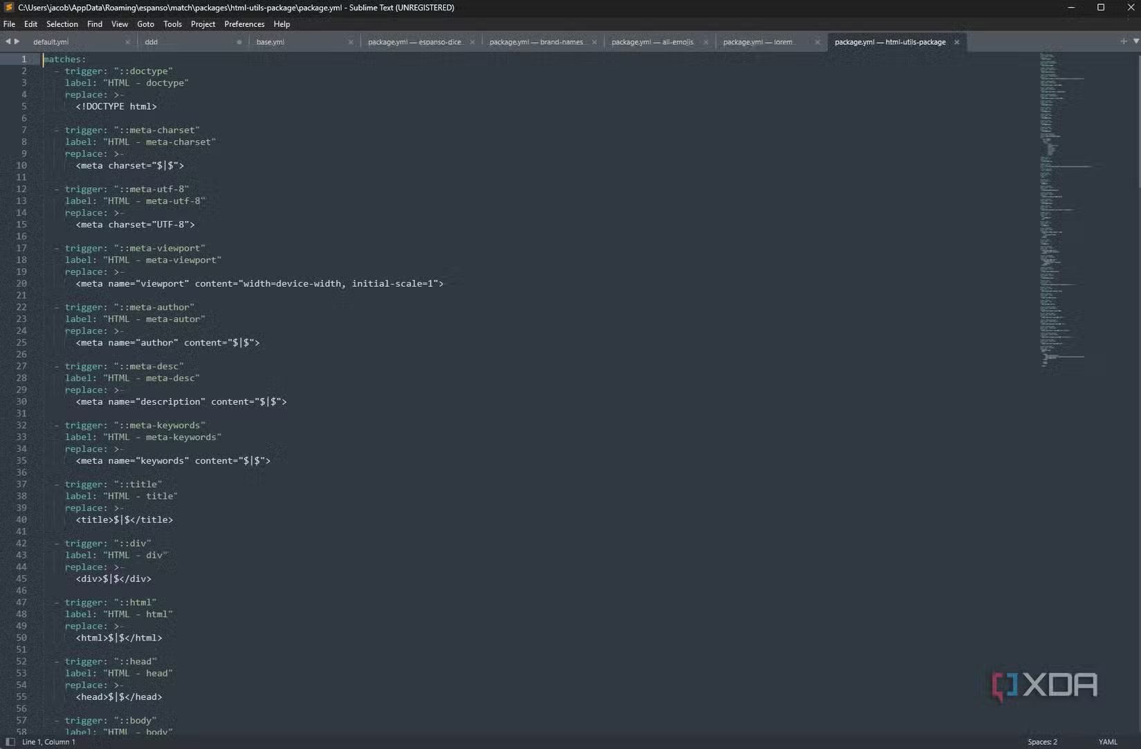 Az Espanso YAML alapú konfigurációs rendszert használ, amely egyszerre rugalmas és könnyen kezelhető. A konfigurációs fájlok egyszerű szöveges formátumúak, így könnyen szerkeszthetők bármilyen szövegszerkesztővel, verziókezelő rendszerekben tárolhatók, és megoszthatók csapattagokkal. Ez különösen értékes vállalati környezetben, ahol egységes sablonokat szeretnénk használni több munkatárs között.