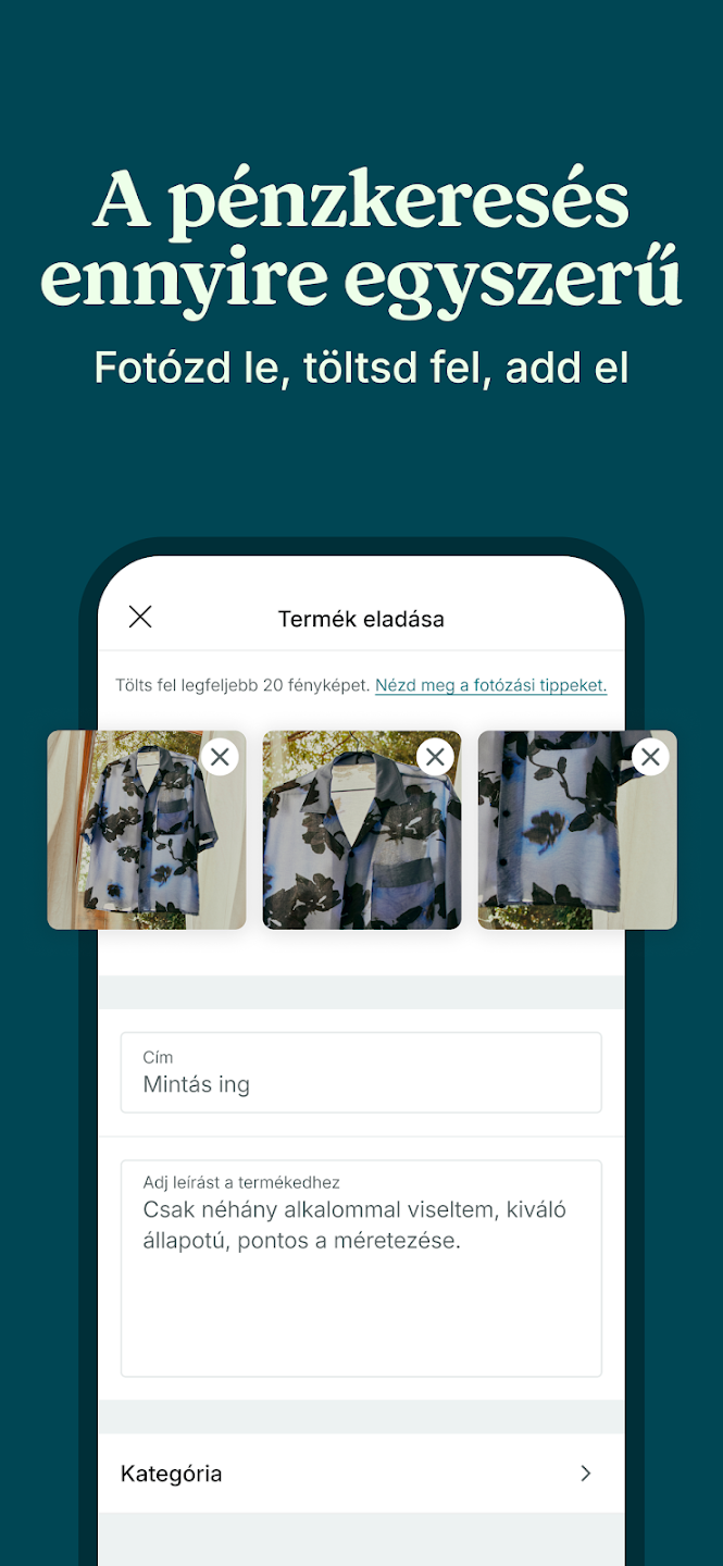 Fotózd le a terméket, adj hozzá egy leírást, és adj meg egy árat. A bevétel 100%-a a tied.