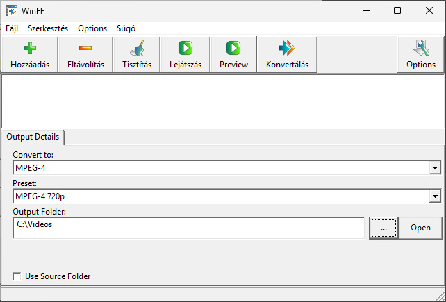 Magyar nyelv is elérhető a WinFF-ben, az átlátható, felhasználóbarát kezelőfelület pedig megkönnyíti a gyors munkavégzést.